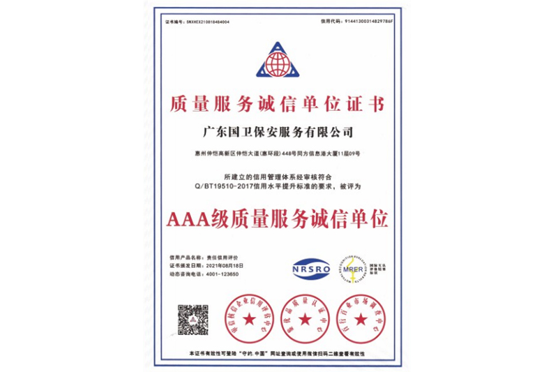 AAA级质量服务诚信单位